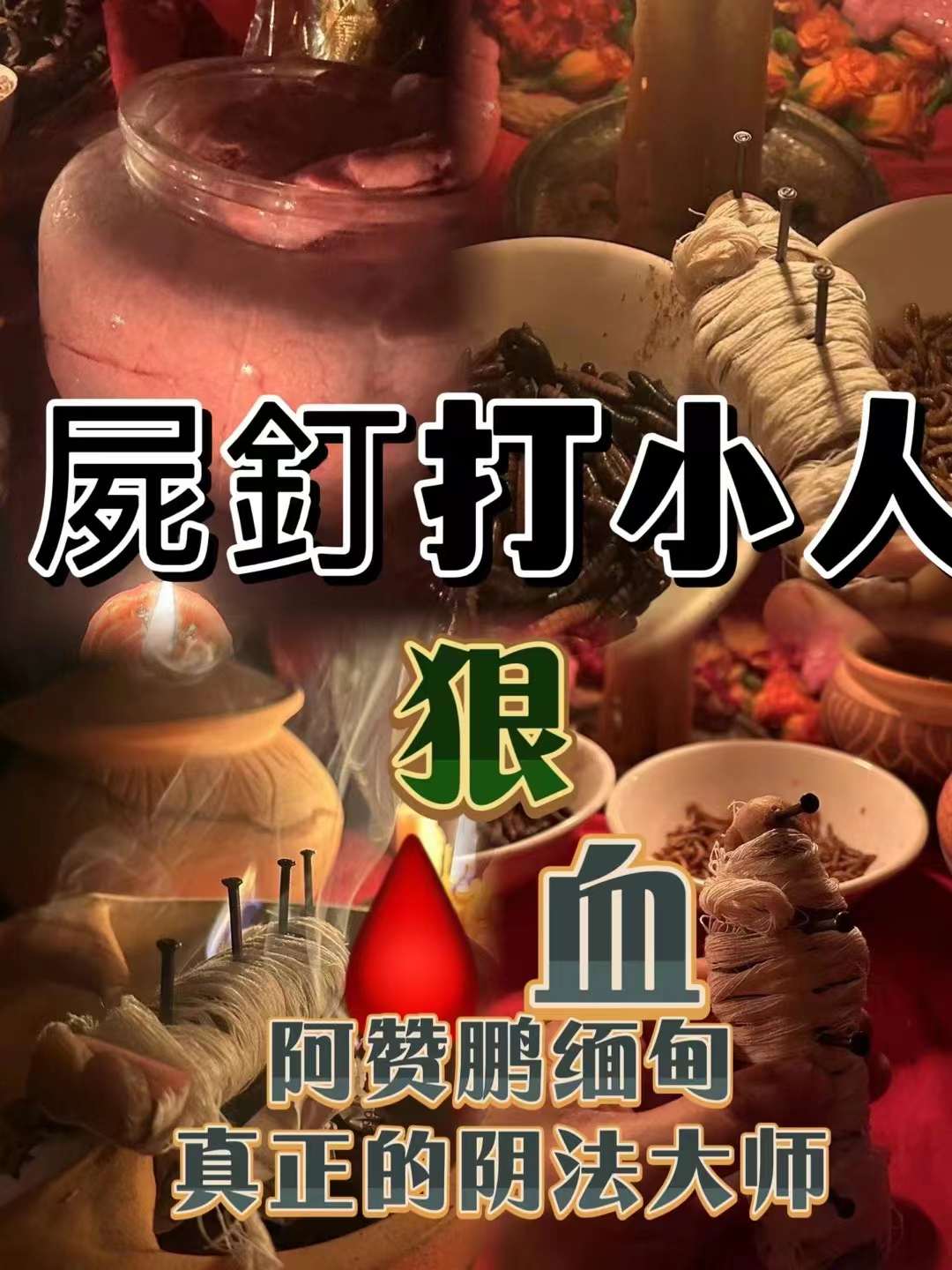 只需要对方的基本资料就可以圆你报复仇人的梦30年养尸虫蠱人❗️❗️❗️师傅会专门在意外死亡的尸体腐肉中挑选尸虫,自己来养,尸虫是靠尸气和腐肉为生的,所以阴气最重!师傅亲口说的,只有这样的你拿来养,才会得到真正的效果!养尸虫蠱,扎小人,让小人痛不欲生,生病,面临各种问题!难以处理!师傅会有棺材钉,钉...