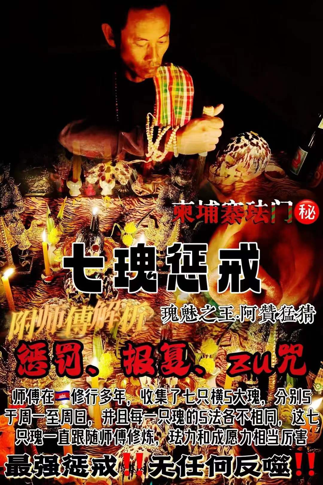 ✨阿赞猛猜【七鬼惩戒🔥】瑰魅之王·阿贊猛猜‼️🇰🇭珐门㊙️‼️此珐事🉑️为你惩戒小人、报复仇人,让他得到应有的惩罚,让他霉运缠身、不可翻身,让他陷入深渊,永无出头之日,(没有牛逼的文案,只有亲试才懂‼️)⚠️师傅在🇰🇭修行多年,收集了七只横S大瑰,分别5千周一至周日,并且每一只瑰的S法各不相同,这...