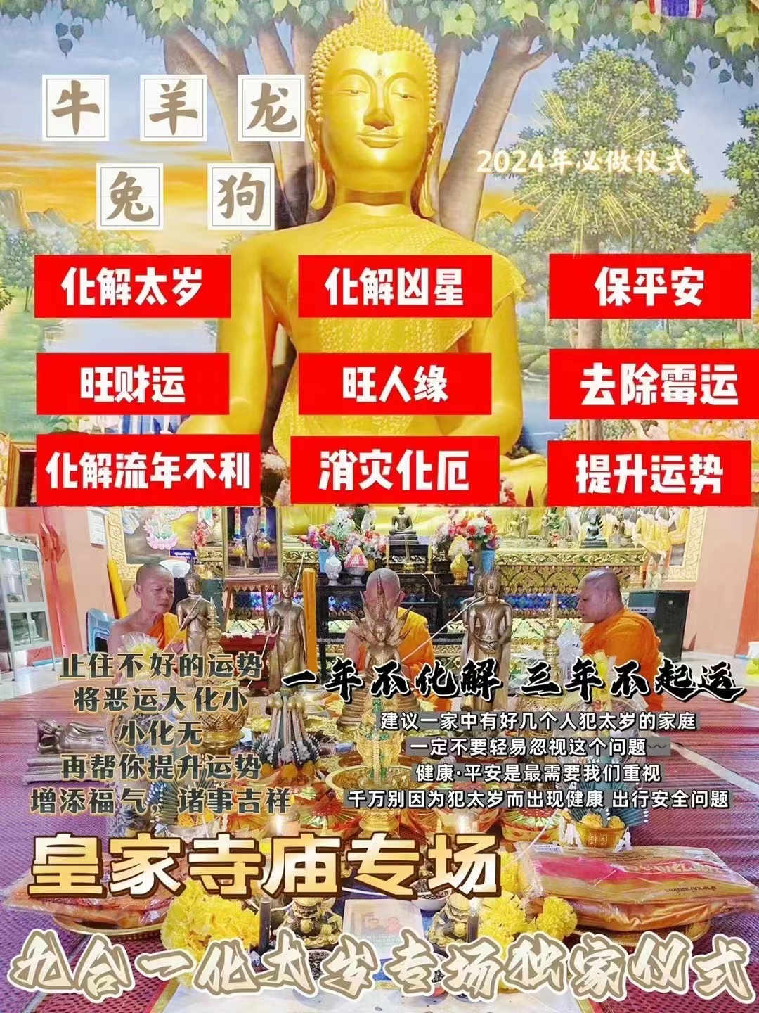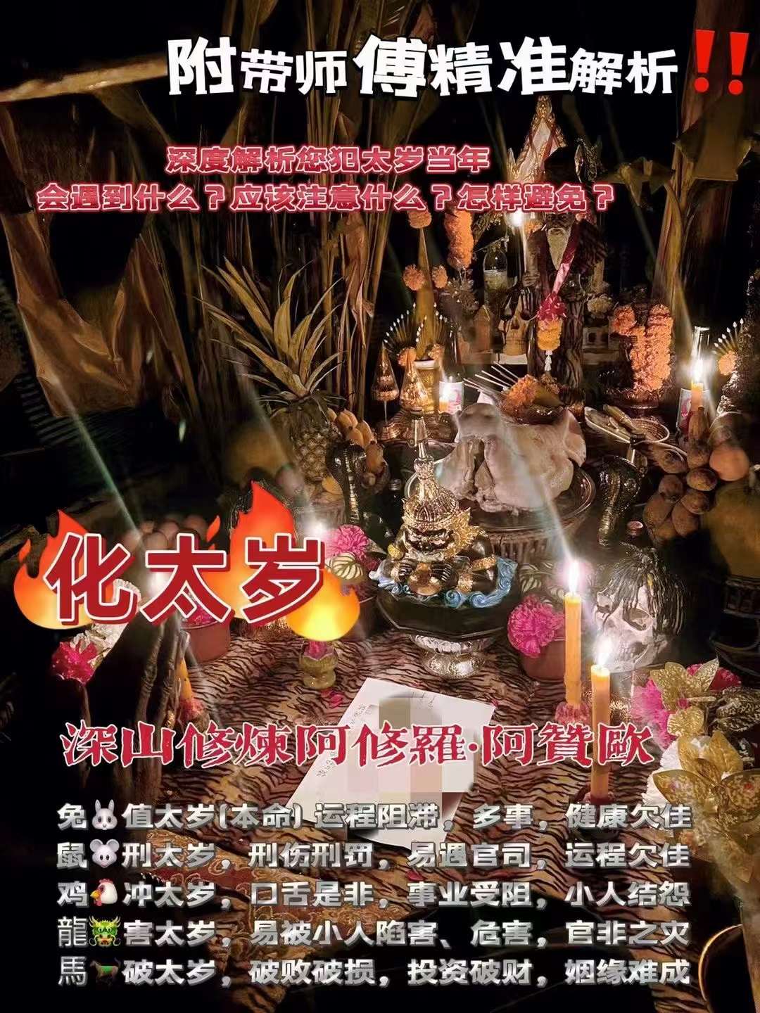 太岁头当坐,无喜就是祸。太岁不化,三年霉运缠身!岁将末至,磁场🧭紊乱,容易到受太岁星君的伤害!一定要提前化太岁👍防患于未然,把伤害降到最小!现强势推出阿赞猛师傅一对一专属化太岁法事。师傅根据你的生辰八字为你量身定制!先请鬼王守护神,为你挡险避灾,保护你、挡走邪灵、镇守家宅、改善你的磁场风水;再请拉...