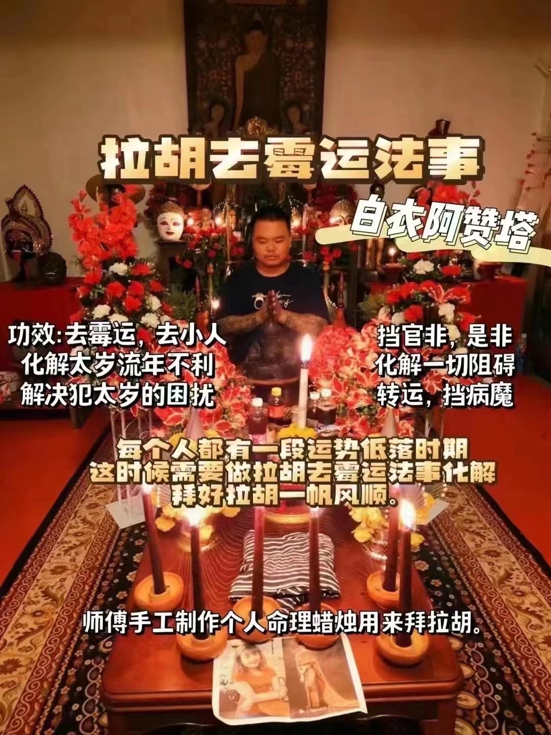 🆕白衣阿赞塔拉胡去霉运法事,有时🔰我们不知道自己为什么运势不好🆕,却不知命理是犯了拉胡、太岁😈😈👿,需要供奉拉胡🕯️🕯️🕯️有的人身边常会有小人是非口舌之争🔮🔮在做生意工作中,📛♨️💢甚至日常有好事时也都会被小人在背后破坏, 阿赞塔的拉胡法事针对善信命理一对一制作了六根🕯️🕯️🕯️,用于拜拉胡化解...