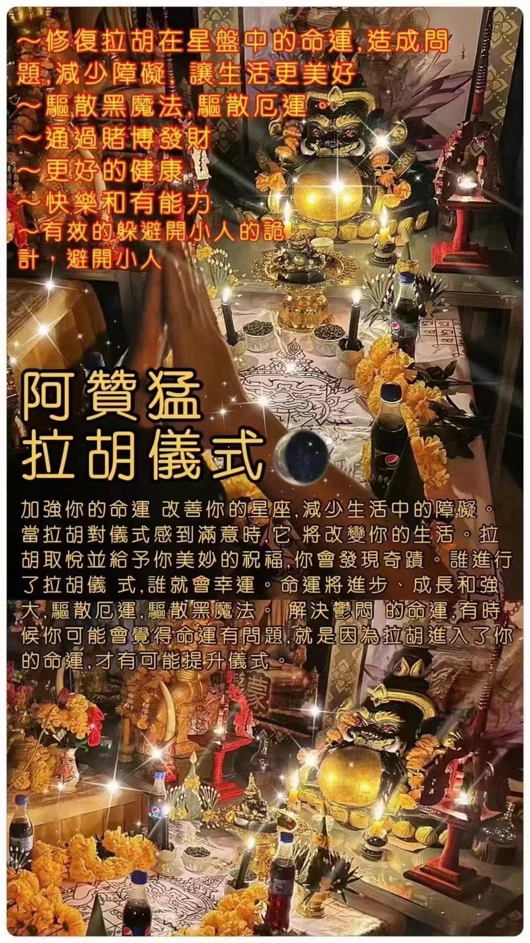 阿贊猛師傅💫比較高級別的拉胡,送看運勢解析。這是更高級別的拉胡法事!阿贊猛師傅🔥拉胡天神祛黴運法事🔥法門,根據個人命格施法轉運,吃小人,去官非,強勢轉運❗ 能夠有效的躲避開小人的詭計,避開小人 交好運,去除身體周圍不良的磁場。尤其最最最適合本命年犯太歲的人,都適合做法事,也強力推薦做生意,求職的各...