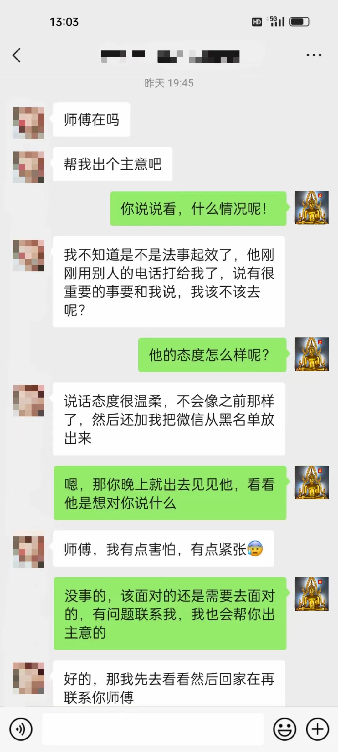 2月5号来咨询的缘主,6号做的情降法事,复合了二十天后到今天才来反馈
