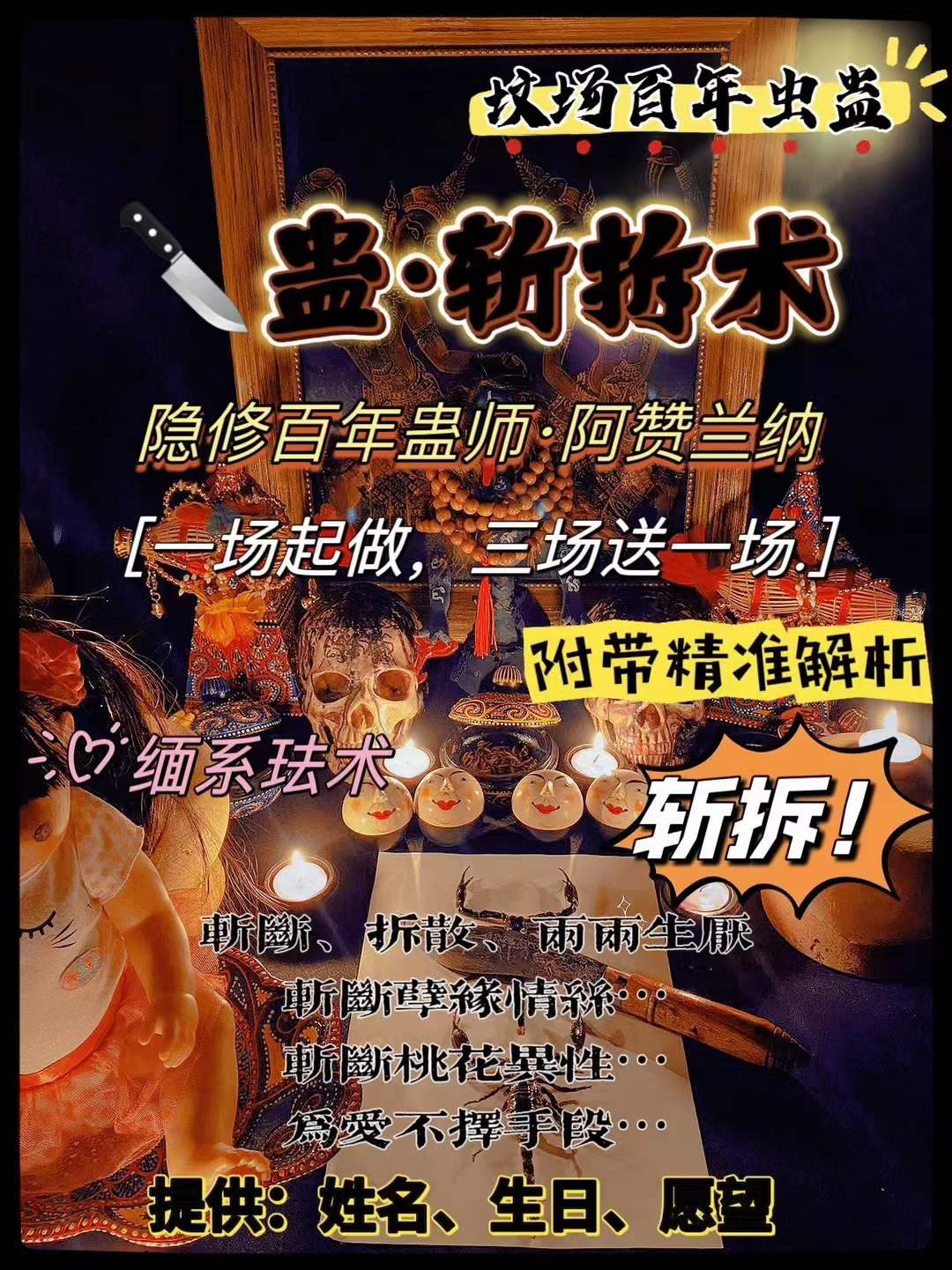 ✨【🩸祭钕灵棺蛊系列🔥 斩拆术✂️】森林隐修派宗师·阿赞夺🔥🔥此fs为最狠厉的斩拆‼️ 针对某个人或者情侣·提供愿望,强效斩桃花、斩小三、斩海王、折散拆分‼️深夜墓地一对一进行,無任何反噬‼斩桃花,斩小三,烂桃花,拆婚,分离孽缘。此斩桃花·拆散f事不同于一般的斩拆。有孽缘的二者天水一方,永不相见!...