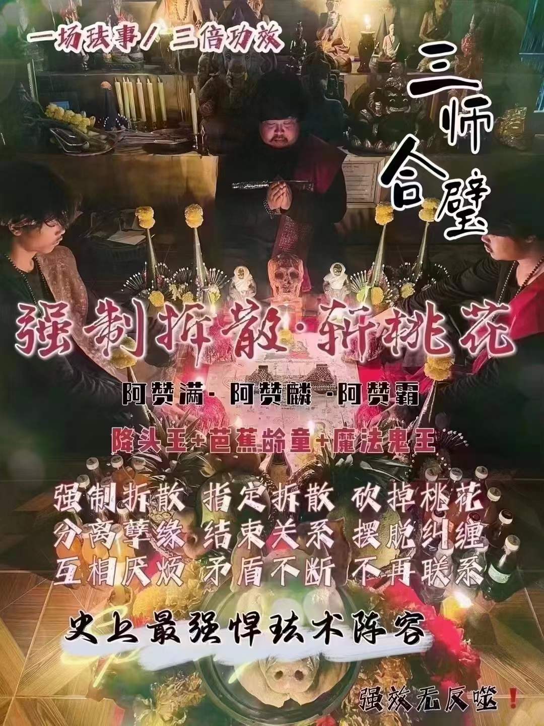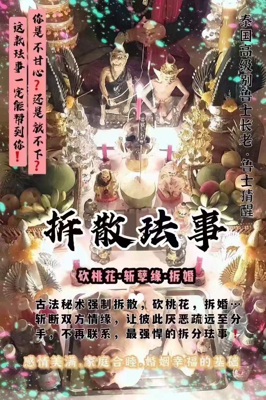 ✨泰国顶级鲁士·鲁士猜醒—-拆散珐事,古法秘术强制拆散,砍桃花,拆婚…斩断双方情缘,让彼此厌恶疏远至分手,最强悍的拆分珐事❗️主要适用欲求分手,或对方纠缠不休、感情确实破裂且不愿挽回的情况,使他尽早解脱不应该有的感情和婚姻。作用是让男女见面如羊见虎伤逃。 拆散法事,就是斩断这跟线,改变各自的磁场,起...