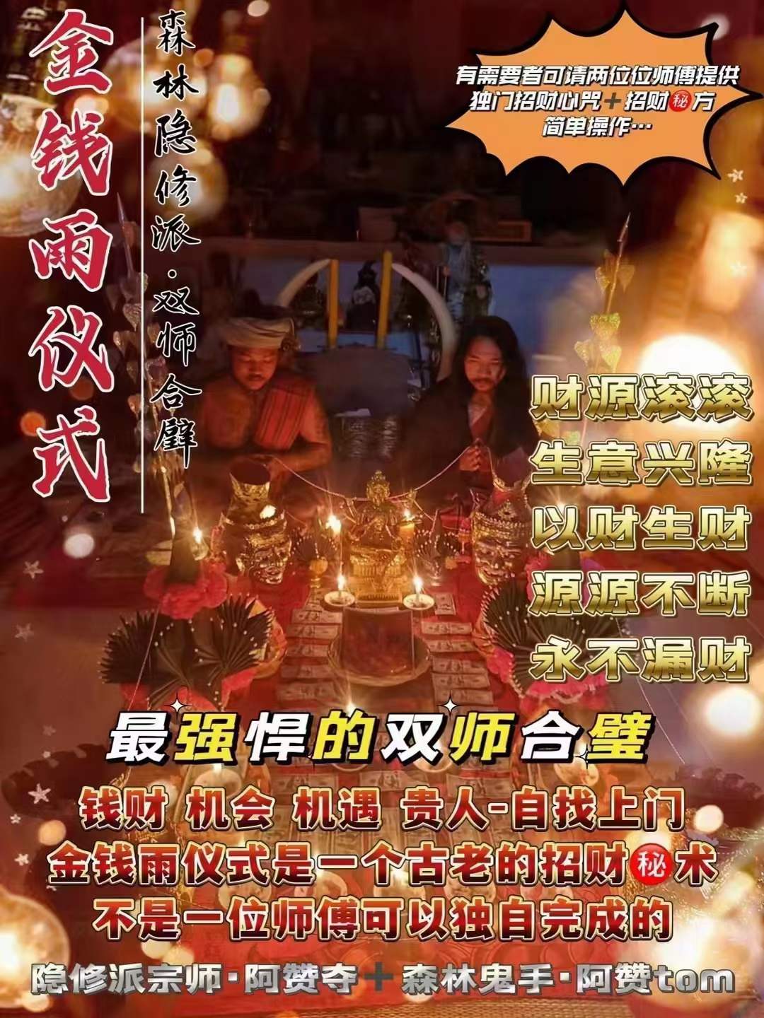 ✨【双师合璧·金钱雨仪式】重磅💥🔥…双师合璧❗️隐修派宗师·阿赞夺+森林鬼手·阿赞tom森林隐修派·双师合璧❗️所谓金钱雨,财从天降,如大雨倾盆而下,形容钱财满地,步步生金❗️此仪式🉑️使财源滚滚,生意兴隆,以财生财,源源不断,永不漏财❗️最强悍的双师合璧❗️钱财 机会 机遇 贵人-自找上门❗️金钱...